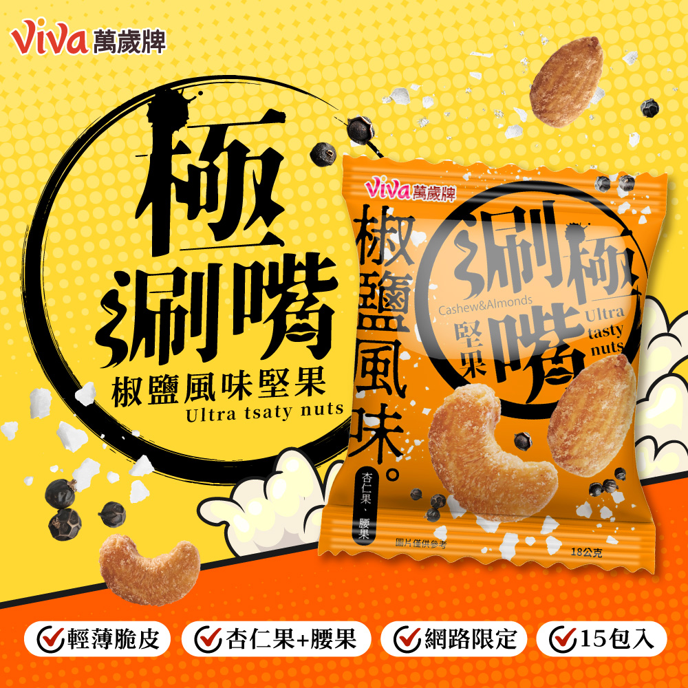 【3袋組】萬歲牌-極涮嘴堅果椒鹽風味(共45小包),★新品★平均每包$18,C51400003,【3袋組】萬歲牌-極涮嘴堅果椒鹽風味(共45小包),有效期限,非素食