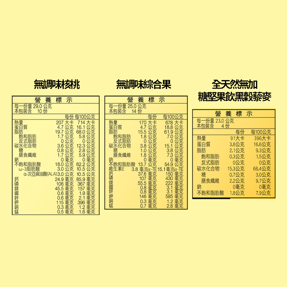 無調味綜合果/無調味核桃/無加糖黑穀藜麥堅果飲