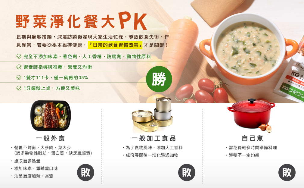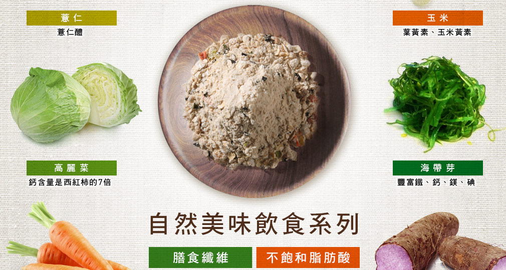 無添加味精、無香精、無動物性成份的養身又營養沖泡餐。
