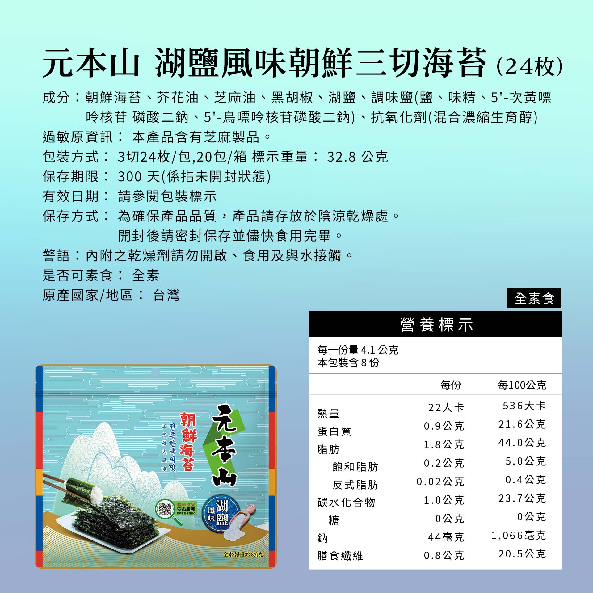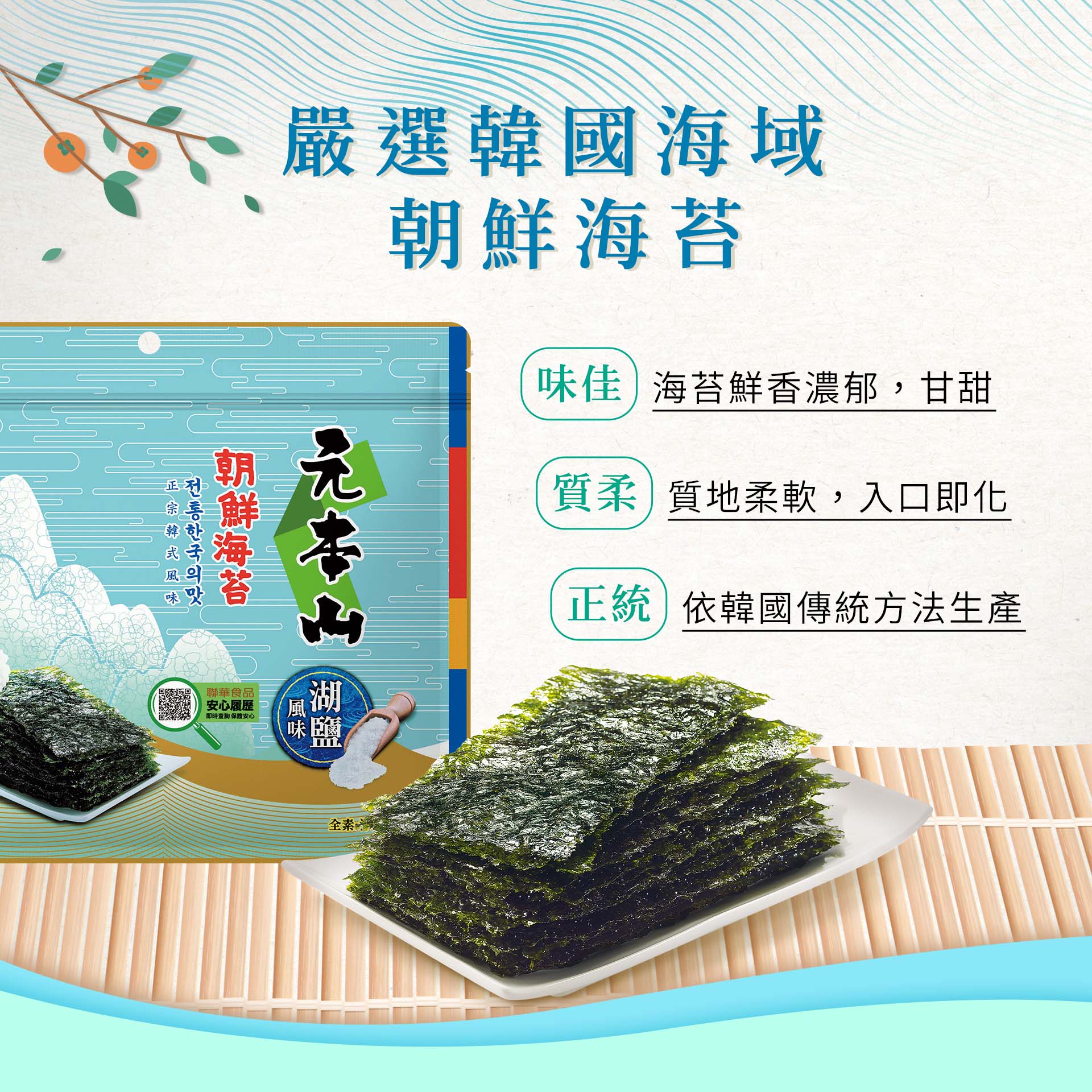 元本山【湖鹽風味】朝鮮海苔,鹹香,不過鹹,開胃,讓你一片接一片~無論是「直接單吃」還是「搭配飲品」,任何時刻,都美味又好搭!