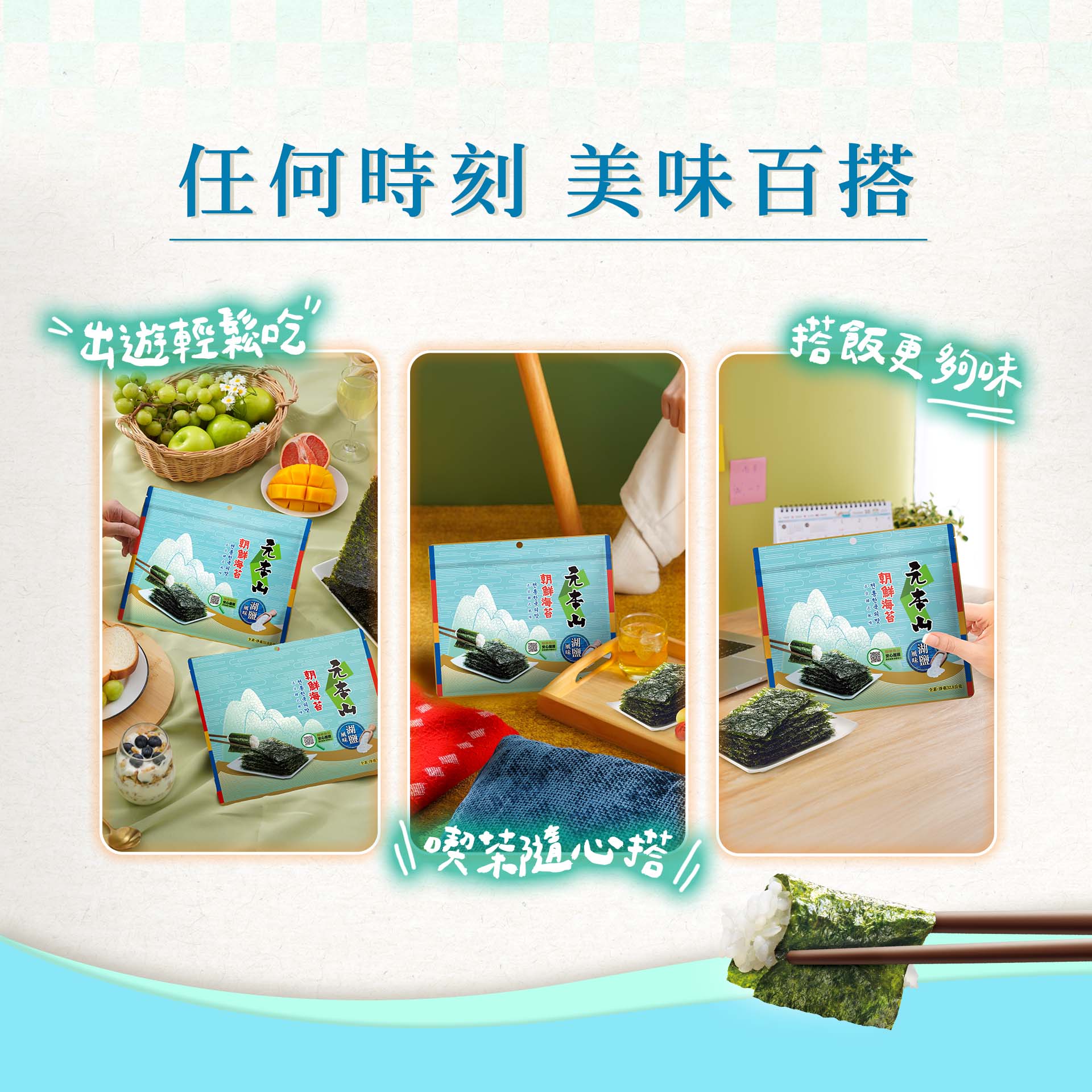 ☑ 海苔直接單吃 ☑ 配熱茶 ☑ 配冷飲