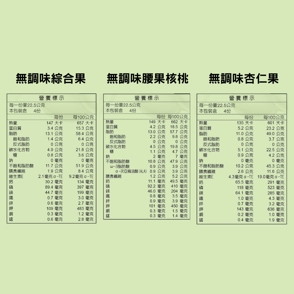 ✔無調味杏仁果 ✔無調味綜合果 ✔無調味腰果核桃