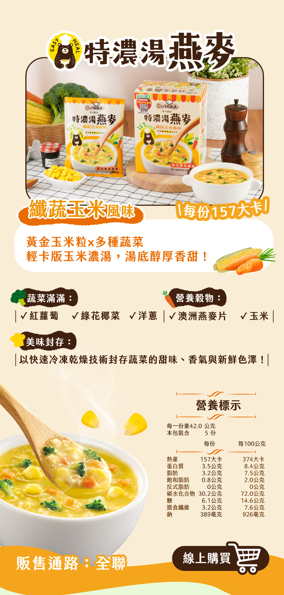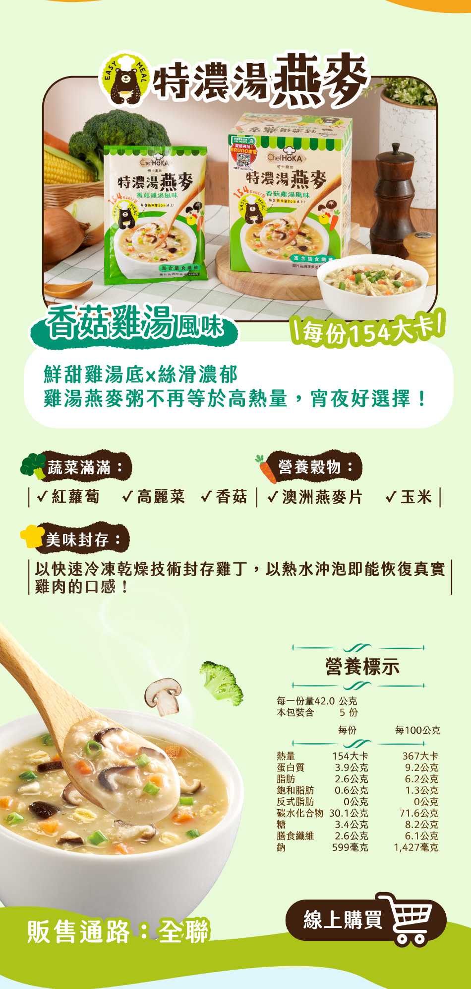 荷卡廚坊-特濃湯燕麥(香菇雞湯風味5包) | ★聯華食品e購網★
