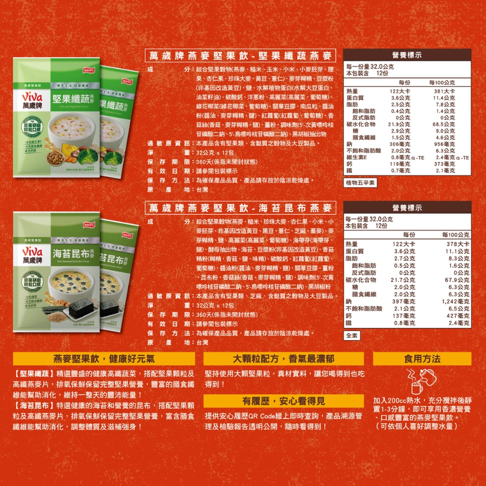 - ✔燕麥堅果飲,健康好元氣:精選豐盛的健康高纖蔬菜,健康海苔和營養的昆布,搭配堅果顆粒及高纖燕麥片,排氧保鮮保留完整的堅果營養,豐富的膳食纖維能幫助消化