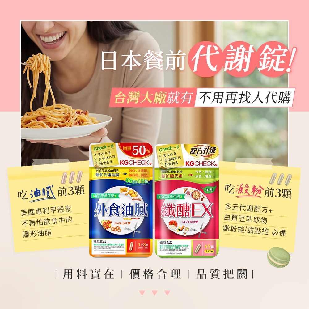 - 餐前30分鐘吃3錠,方便不忘記!可與纖油錠搭配食用。建議餐前食用,若忘記吃,用餐開始時吃亦可。